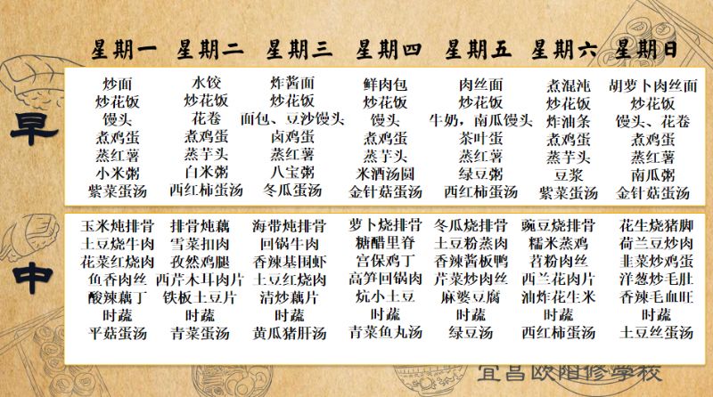 宜昌歐陽修學(xué)校每周食譜(10月20日-10月26日)