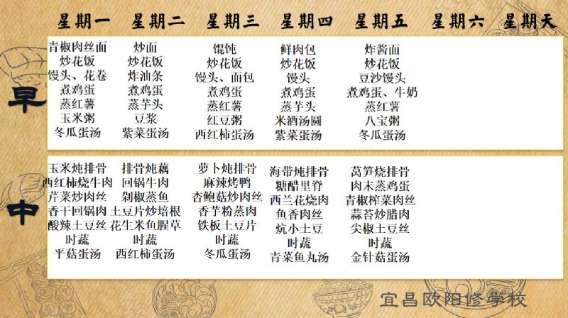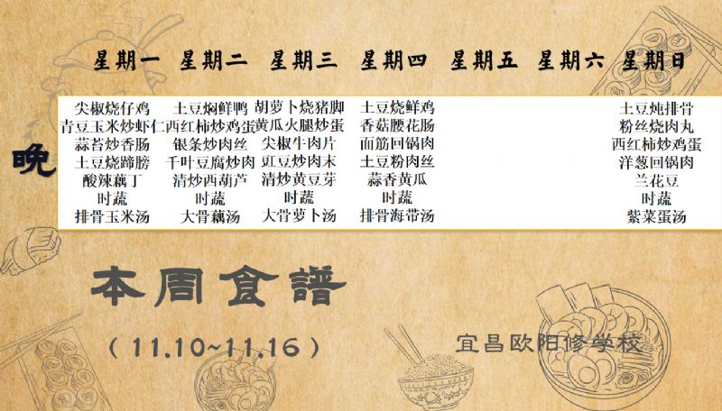 宜昌歐陽(yáng)修學(xué)校每周食譜(11月10日-11月16日)
