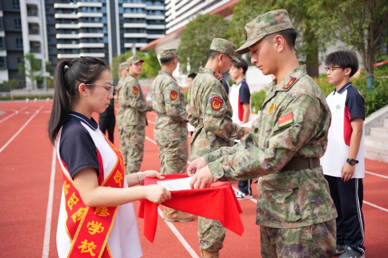 圖為教官為優(yōu)秀班級(jí)代表頒獎(jiǎng)