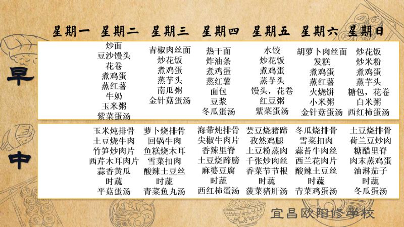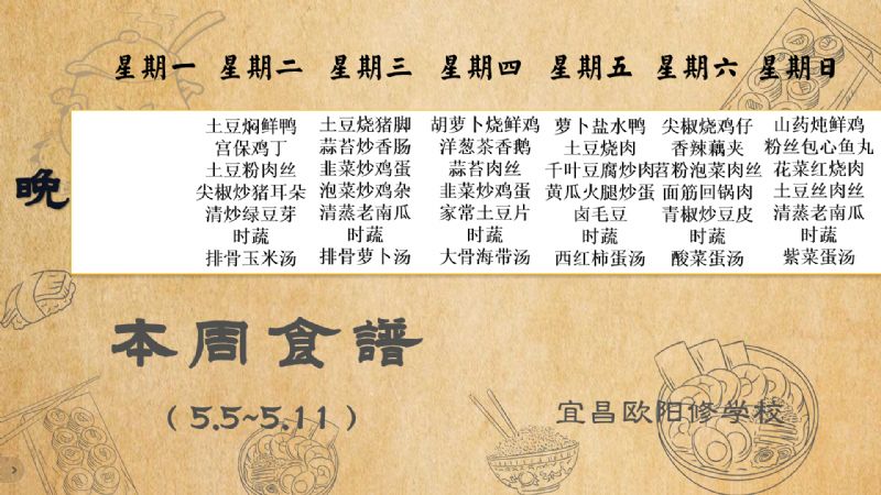 宜昌歐陽修學(xué)校每周食譜(5月5日至5月11日)